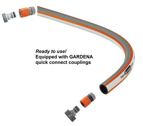 Gardena 3/4'' classic hose with double helix structure also comes with original GARDENA system fittings.