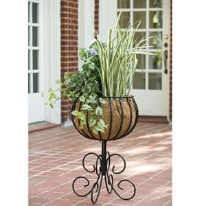 Proudly display your flowers in the Blacksmith 14 in. Steel Patio Urn with Coco Liner. This signature barley-twist urn is made from zinc-coated steel for rust resistance, making it great for indoor or outdoor use.