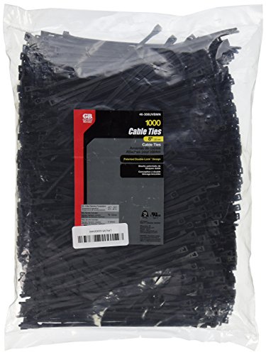 Gardner Bender 46-308UVBM Standard Cable Tie, 0.17" Width, 8" Length, 2" Maximum Bundle Diameter, 75 lb Strength, Ultraviolet Black, 1 Bag of 1000 Ties [並行輸入品]