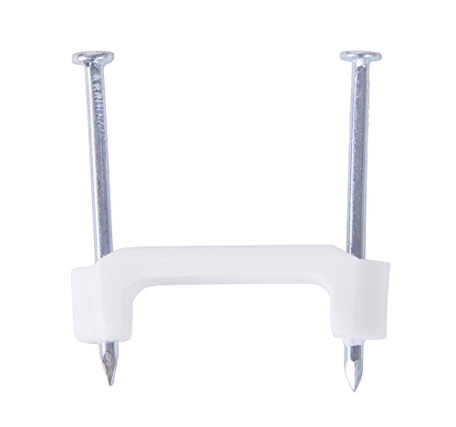 Fasten 1/2" and 3/4" Romex cables safely and securely with non-conductive plastic staples Use with UF and NM cable up to 3-conductor (#10) Fast and easy to install, drive both zinc plated nails together without splitting wood Nail heads are recessed for minimum exposure Smooth saddle, 3/8" wide, prevents damage to insulation High grade injection molded polypropylene resists rot, rust, deterioration and effects of temperature extremes 3/4" 50 per bag Length: 1Width: 4.38Height: 8
