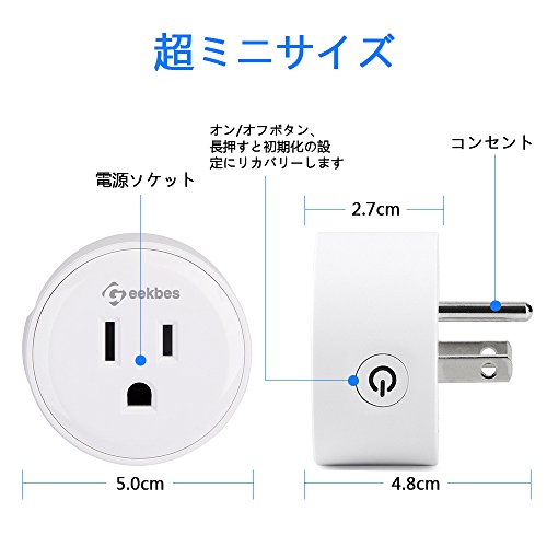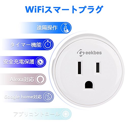 - 【どこでもコントロール】あなたのスマートホンでどこにいてもプラグのオン/オフを制御できます。特定の時間にプラグのオン/オフをスケジュールします。あなたの家族とデバイスを共有できます。自社開発のGeekbesスキルは日本語音声を対応しており、AlexaとGoogleホームを使用してあんたの声でプラグをコントロールできます!