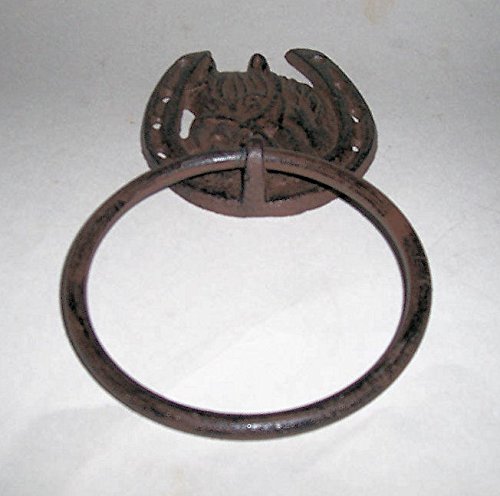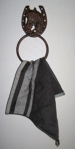 ABC」製品「 – Heavy Cast Iron – Horseshoeタオルリング – Good Forホーム、ログキャビン、Cottages、ストックバーン, and More – (ダークブロンズ仕上げ – ダークブロンズ仕上げ – アクセントwith Horse Head Inside )
