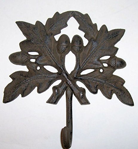 - 重い鋳鉄製 – 艶のあるダークブロンズ仕上げ – 4オークの葉 – 4 Acorns – 下部にある大きなループ付きのフックがアクセント