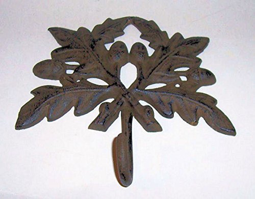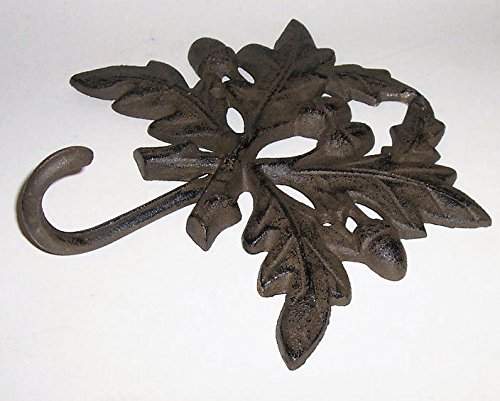 ABC製品" – Very Large – Heavy Cast Iron – 壁フック – オークリーフデザイン – Largeフックループフックat the base – (壁ハング – 素朴なダークブロンズ仕上げ)
