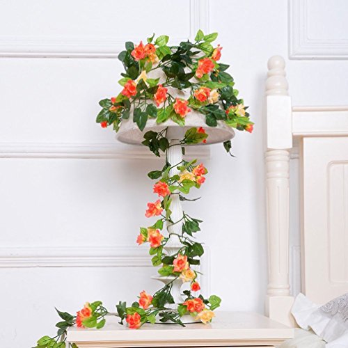 2ピースシルクローズ花Rattanグリーンシミュレーションリーフアイビーつるガーランドウェディングパーティー One Size EIOLP152506393286