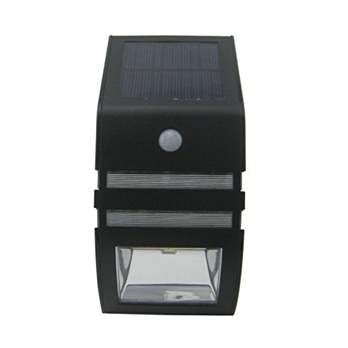 Description: the outdoor solar powered motion sensor LED wall mount light is designed to illuminate your outdoor walkways, dining areas and decks, all while adding extra security to your home and taking Advantage of solar energy. Made of durable stainless step, this solar light mounts easily to posts and walls and provides a white light, emitting 40-lumen LED. The LED bulb will never need to be replaced and will remain cool to the touch at all times, providing safe lighting that will not burn or heat-up. Solar lights gather energy from the sun during the day, and then automatically come on at motion detected. Specification: power source: solar-powered light bulb type: LED number of light bulbs: 2-smd brightness: 40Lm motion sensor: up to 5 meter and 90 degree detection range vertically and horizontally automatically at night frame material: stainless steel + ABS protective qualities: weather resistant, freezeproof, all-weather design includes: rechargeable batteries dimensions:6.69 in x 3.07 in x 1.89 in WEIGHT: 7.51 oz switch: auto & off package including: 1 x solar motion sensor wall mount lamp 1 x set of screws for installation 1 x user manual.