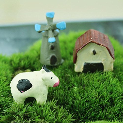 Generic Miniatures Cow Animal Crafts Fairy Garden Mini Gnomes Moss Terrarium Resin Crafts Decoration With Bullpen Windmill