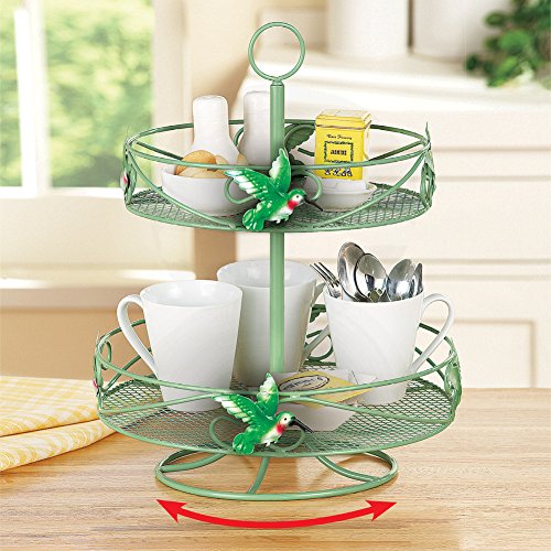 この便利なLAZY SUSAN機能2つの区分整理に使用できるJar、スパイス、缶詰などが追加されました。スプリンググリーンのスクロールで飾られたデザインはハチドリのタッチの魅力の1つです。非接触する食料を供給した。メタル。上の層は10 " DIA。、下の層は直径12 " X 15 1 / 4 " H