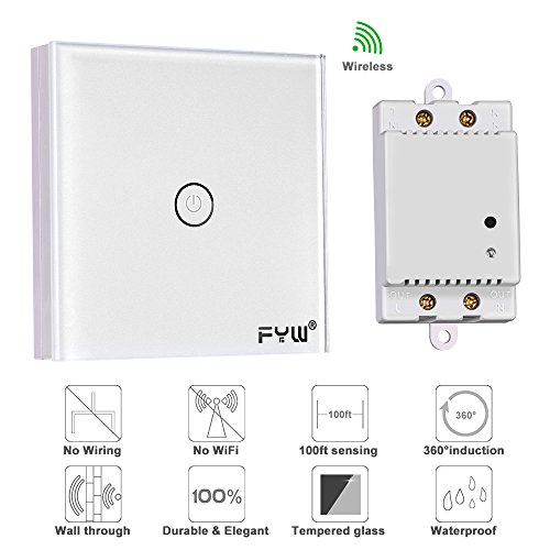 ワイヤレスリモートコントロールライトスイッチキット、RF no配線コードレスforハロゲン/電球/ CFL /蛍光灯/ LED /天井ライトランプ、簡単なインストール、防水( 1スイッチ、1レシーバー)