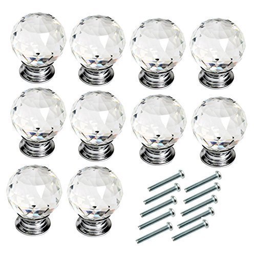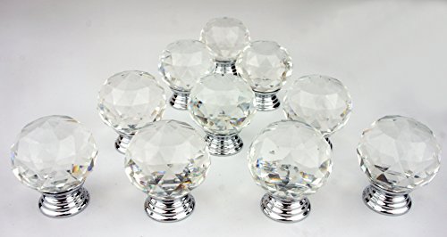 dastar8482 ; 10個パックボールクリスタルガラスキャビネットノブ食器棚引き出しプルハンドル30 mm (クリスタルクリア)