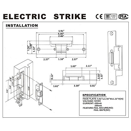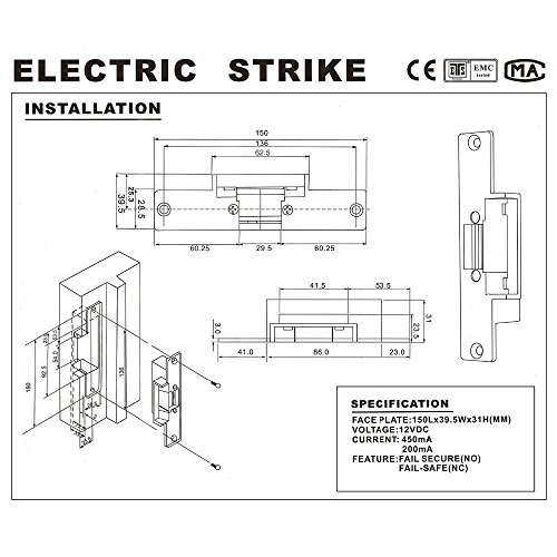 Generic 12 VDCセキュリティ失敗安全noモードElectric Strikeロックのドアエントリアクセス制御システム