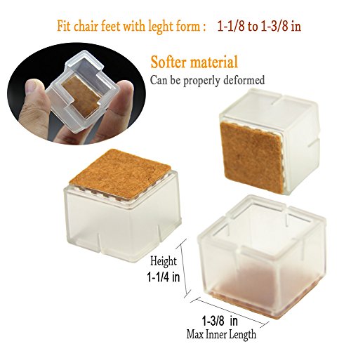 椅子脚フロアプロテクターカバー、フェルトマットフィート、ダストから、滑り止め耐久性ノイズ削減、床プロテクターfor Hardwoodラミネートクリア正方形1 – 1 / 8 to 1 – 3 / 8 " 16個
