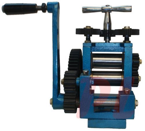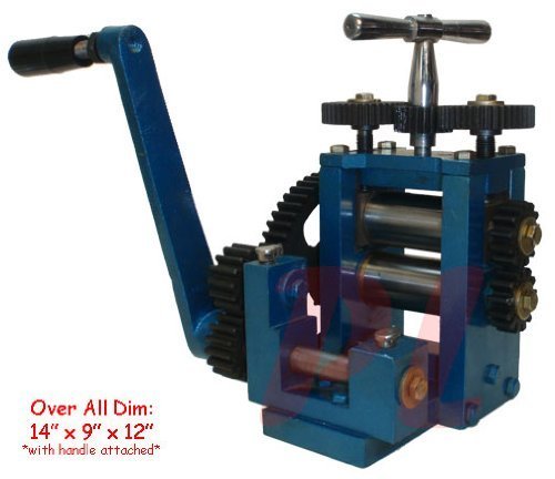 Quantity: 1; Over All Dim: 14" x 9" x 12" *with handle attached*. Combination Rolling Mill This is a new combination rolling mill with 5 rollers. This is a well made rolling mill used for rolling out silver, gold, etc. into wire or sheet. Rollers are fabricated from selected high carbon steel, hardness 80 - 82 Rockwell. Capable of producing metal foil as thin as .001". 4:1 Ratio Gearbox designed to transfer force from the handle to the rolls with minimal effort from the operator. This unit is very versatile and will do flat sheet stock. Specifications: Two flat rollers that measure approximately 3" (76 mm) Three grooved roller that measures approximately 3" (76 mm) Two Patterned Rollers with a different pattern on each half that measure approximately 3" (76 mm) It has a maximum opening of 0 - 4 mm Color may vary from picture To reduce rust in storage, metal tools received may come in packing grease or oil. To remove packing grease we recommend using degreaser and a rag.