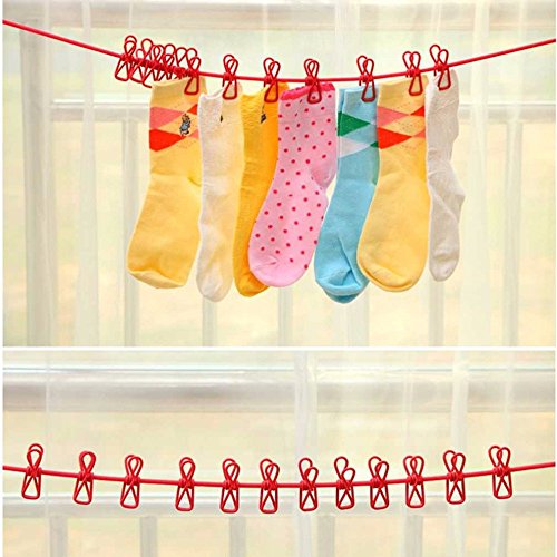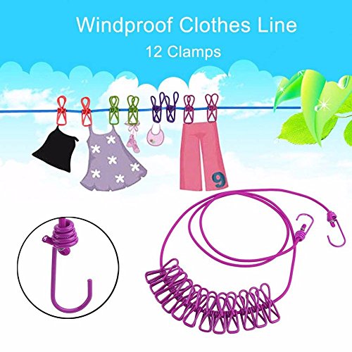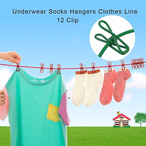 Generic Pink : 6 Colors Portable Outdoor Travel Windproof Clothes Line Drying Rack 12 Clamp Clip Socks Underwear Clothing Clip Holder Hanging