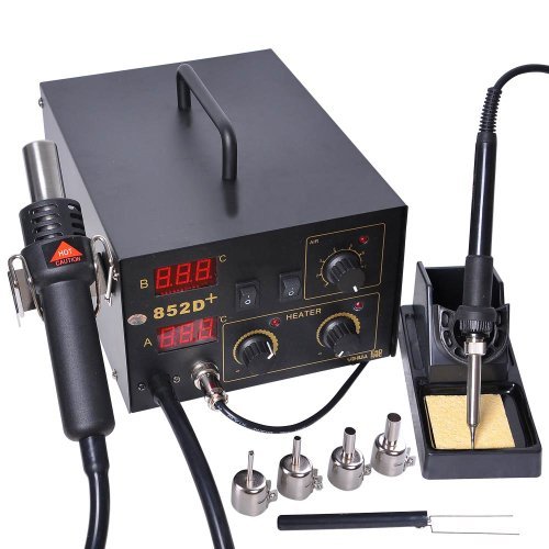 - Brand new 2 in 1 SMD Rework Soldering Station 852D+ includes hot air gun and soldering iron