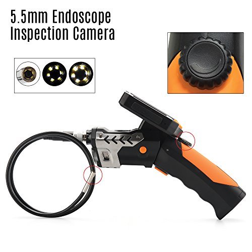 5.5mm IP67 Endoscope inspection Camera with 1/3 Inch CMOS Sensor 720P video, 3.5 Inch Monitor, 6 adjustable high-intensity LEDs.