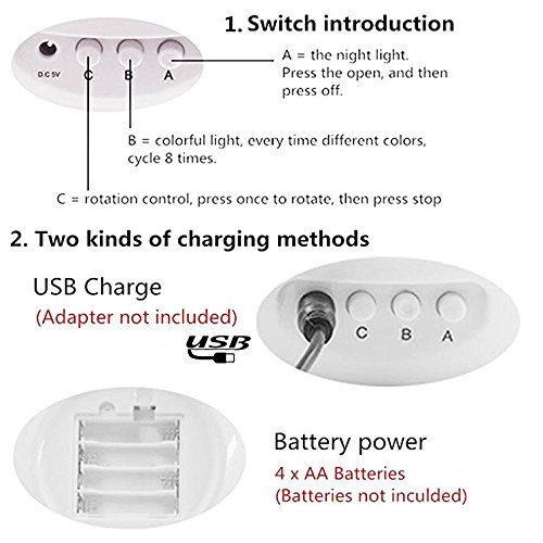 2で構成されています。星を回転させることができるボタン付きCされますが白にわずかな音がすることがあります。これは名案を回転、夜中の非常に静かである。