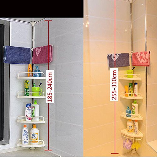 Generic United Kingdom, white : New Adjustable Telescopic Bathroom Corner Shower Shelf 4 Tier Rack Organiser Bathroom Shelf