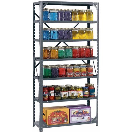 Edsalのの設計された鋼製の缶詰用の棚はシェルフのツールには、最大600ポンドで、どんな缶商品のため、またはパントリーとして。インダストリアルグレードのスチール製ナットとボルト、5つのシェルフにインストールしてリップのエッジ上を向きですので、安全または下向きにしたうえで、下向きの滑らかな面に張ることが出来ます。1 – 1 / 2インチ刻みで調整のシェルフを缶に対応の設定をサポートしています。二重cross-brace提供追加の安定した状態になります。