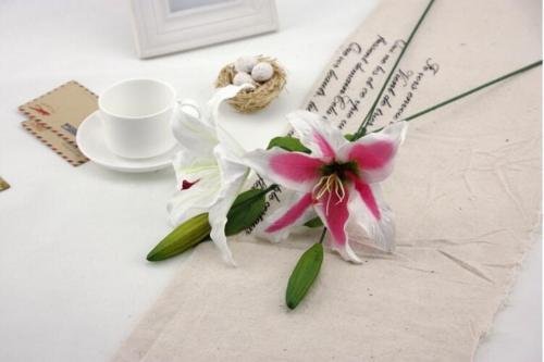 Name: Lily Material: silk flower Specifications: Bunch of a flower head composed of two flower leaves, lots of different, there are three leaves, random delivery Dimensions: overall height 70 cm Color: white yellow pink Rose Packing: Carton Quantity: 4