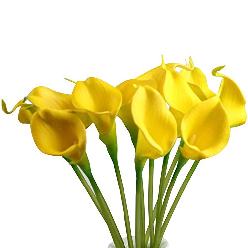 Description: 100% brand new and realistic Calla Lily Flowers. Great for wedding, home, outside and festival decoration. Good feeling touch of the PU calla lily very comfortable. Calla lily flower shape is simple and elegent. Looks natural, real touch, fine material and fastidious process Perfect for decorating wedding party and art hall Office ,coffee shop ,home and garden decoration The effect will be obviously match other colors either other flowers Feature? Material: PU and plastic. Total length:about 34cm/13.3 inch, Flower diameter:5cm/2inch. Color: 12 Colors For Your Reference Quantity: 10Pcs Packing: 10 Pcs Artificial Calla Lily Flowers(The vase is not included)