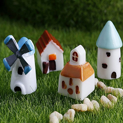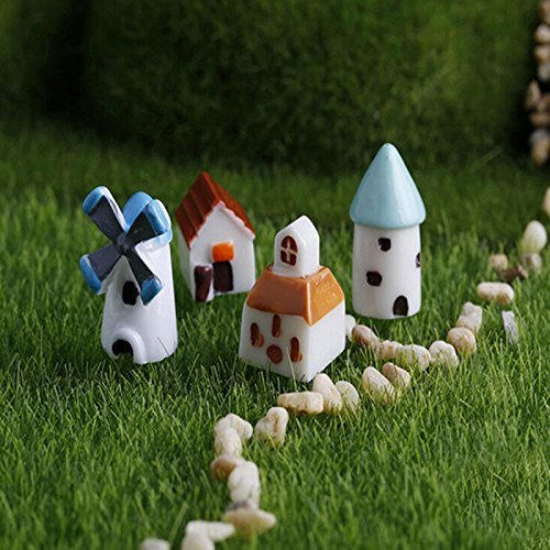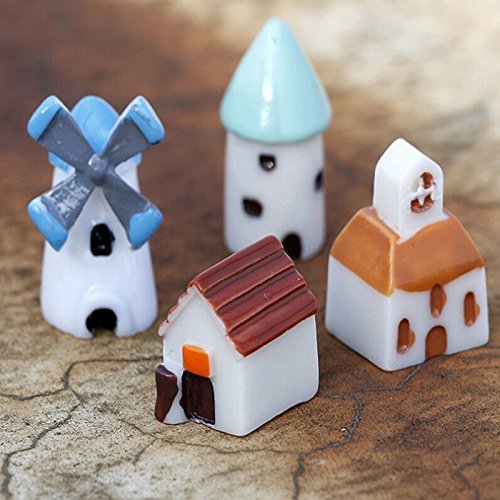 Generic castle : 2PCS cute resin crafts windmill church castle Hut house fairy garden miniatures Micro landscape decor bonsai for home decor