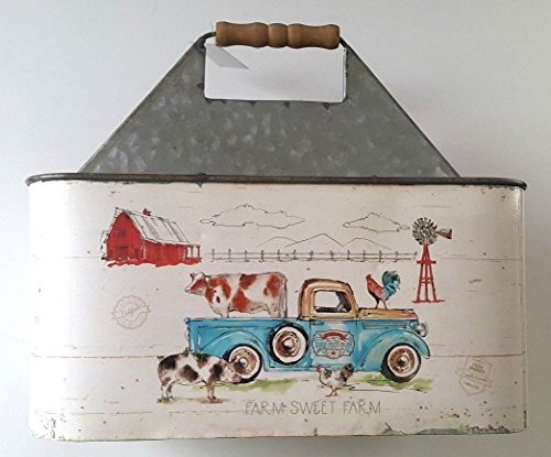 ファームハウススタイル台所用具キャディヴィンテージピックアップトラック表示Cow風車Barnyard国ストレージ