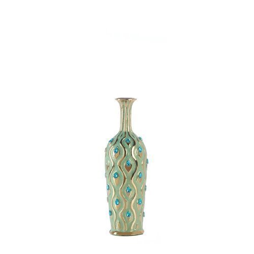 Package: 1 EAThis vase certainly doesnt need flowers to get attention! Gorgeous golden accents and dazzling turquoise jewels create a peacock pattern that will look great in your home.