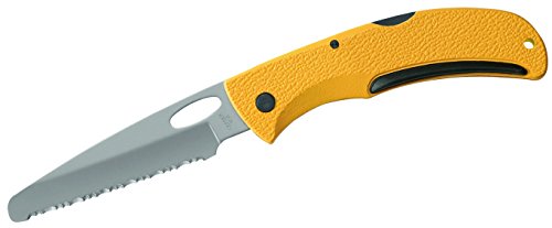 Part of the legend of the Gerber name is our ever-expanding list of special use knives. The E-Z Out Rescue is a prime example. Designed for scenarios when you need to cut without risk of poking or puncturing adjacent surfaces耀uch as someone's flesh葉his knife can be seen clipped on the pockets of search & rescue types. The blunt tip will do no harm. Yet the wickedly serrated blade is gonna cut through stuff like crazy. It's fast, efficient, effective, and measures 3.51" from hilt to tip. The bright yellow handle is made of super-strong thermoplastic that's reinforced with fiberglass. And those black rubber inserts you see? That's a material called Kraton, which we engineered in for extra gripping performance. Length Closed: 4.51" Length of Blade: 3.51" Weight: 2.6 oz. Blade Material: High Carbon Stainless Handle Material: Glass-filled nylon with Softgrip Inserts Blade Style: Clip Point Blade Type: Full Serration