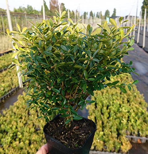 ツゲの仲間で成長が遅く放任しておいても球形状に育ちます。刈込にも耐え日向、日陰ともに育てやすい植物です。