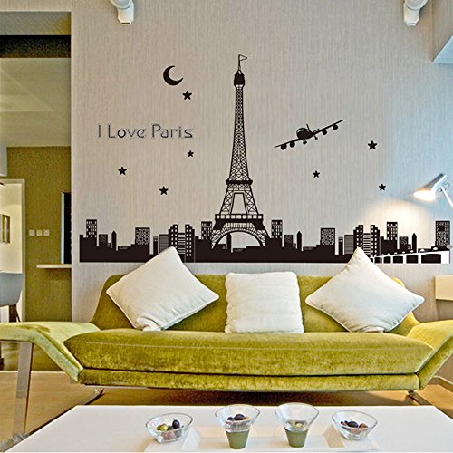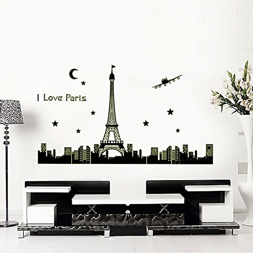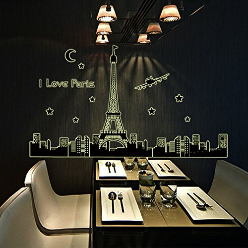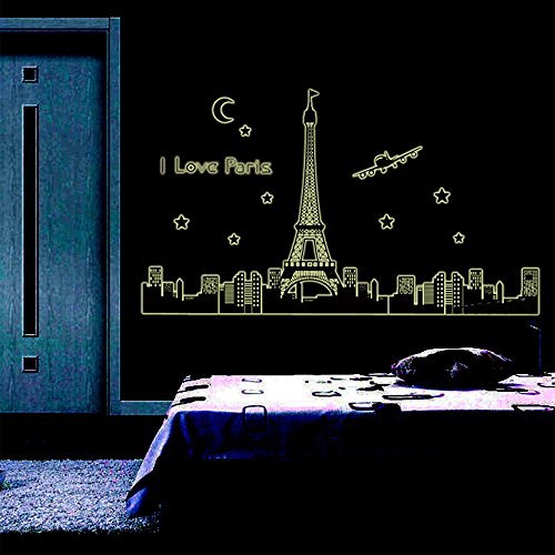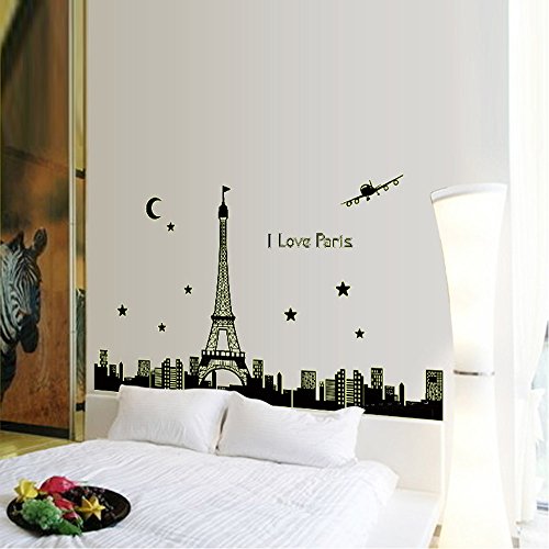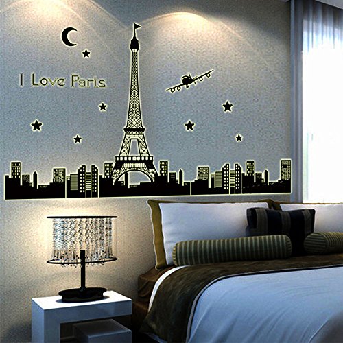 Diy アート インテリア壁紙夜空エッフェル塔ムーン スター都市の建物を見る の パリ夜光ウォール ステッカー壁画デ カール