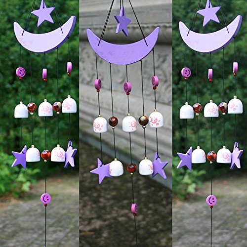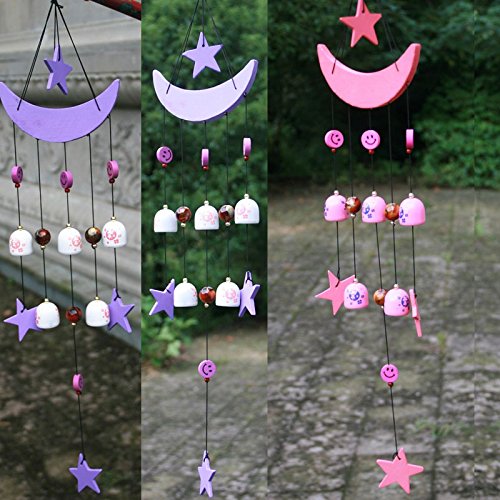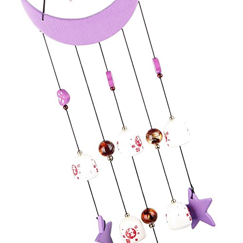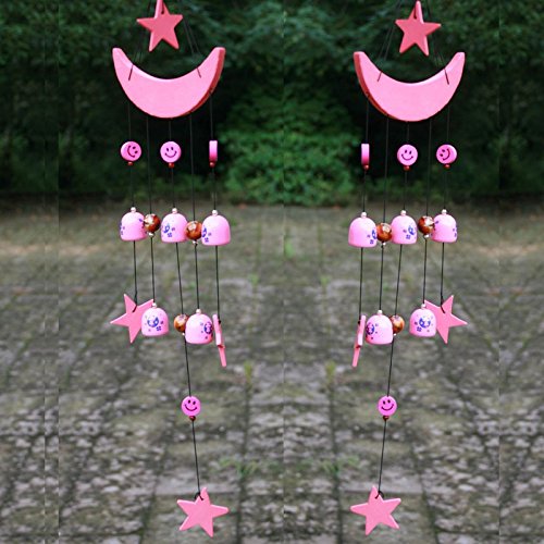 人気5鐘チャイム木製ムーン & スター教会鐘風鈴ギフト #76463-ピンク