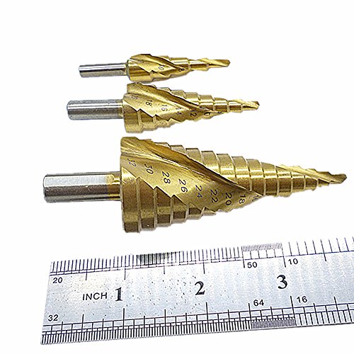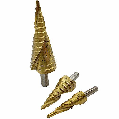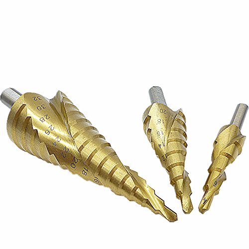 3 ピース三角形シャンク hss スパイラル溝付き ステップ ドリル セット 4 ? 12 ミリメートル 4 ? 20 ミリメートル 4 ? 32 ミリメートル ステップ コーン ドリル チタン コーティング さ れ た穴切削カッター