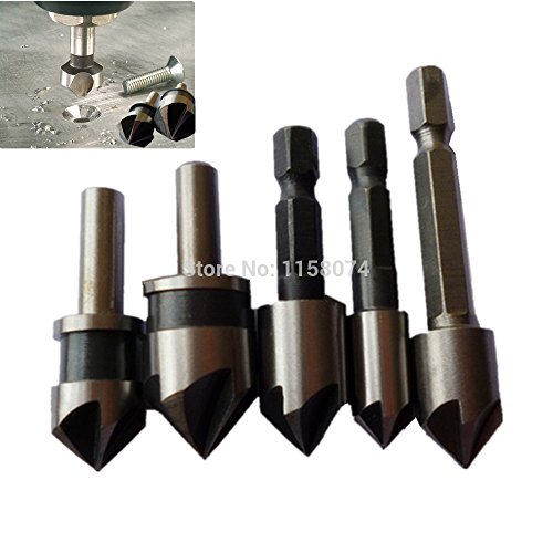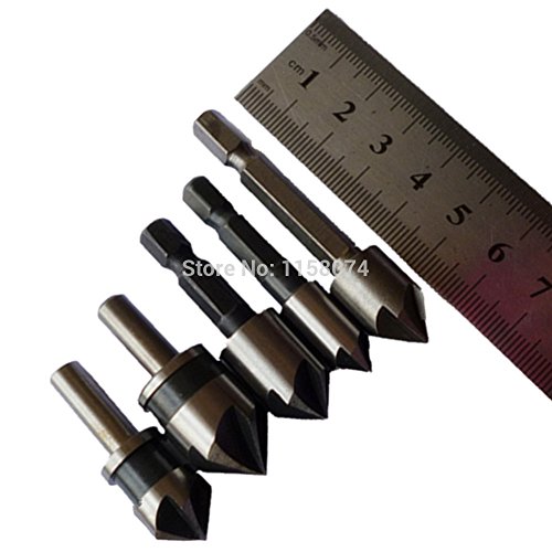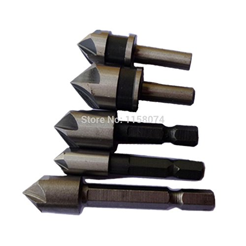 5 ピース hss 5 フルート皿ドリル ビット 82-90度先端角面取り面取り countersinking カッター 1/4 "六角丸シャンク