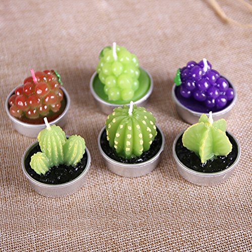 6 ピース/セット人工グリーン植物サボテン ブドウ キャンドル装飾最小サボテン キャンドル用誕生日結婚式の装飾キャンドル-C1