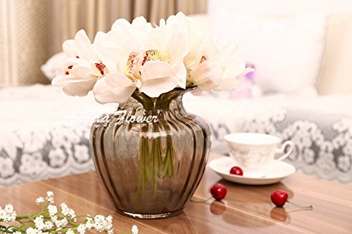 リアルタッチシンビジウム6ヘッド短い撮影テーブル装飾花diyの結婚式の花嫁の手の花家の装飾人工蘭-ピンク