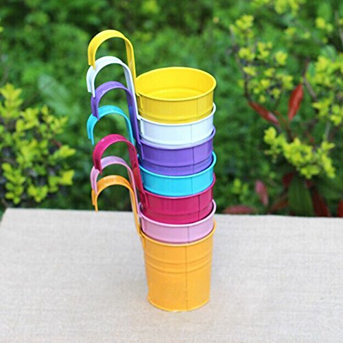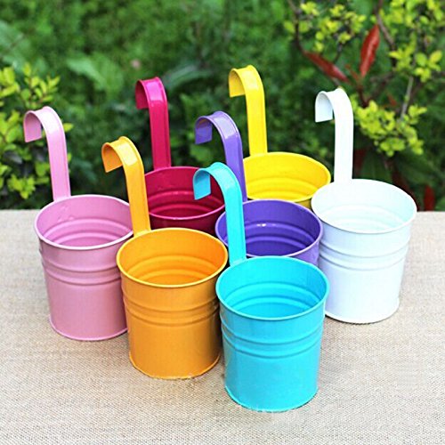 卸売1個のユニークなデザインの鉄の植木鉢を吊り下げ樽牧歌的なバルコニーガーデン植物ハンギングの装飾を選ぶmulticolors-Blue, 10x8cm,