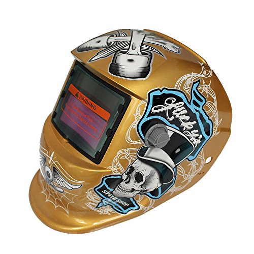 Giantree 溶接ヘルメット、大きな眼の頭蓋骨電動溶接ヘルメット自動暗化フード、ミグTigアーク溶接機のマスクブルーイーグルデザイン
