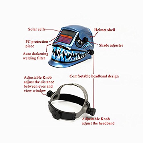 Hanbaili 溶接ヘルメット、シャークソーラーパワーオートダークニング溶接ヘルメット溶接溶接機研削フェイスマスク