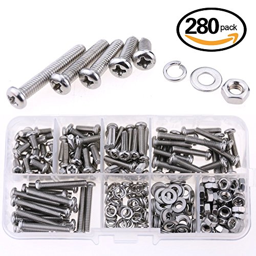 glarks 280-pieces m4パンヘッドPhillipsステンレス鋼ネジボルトロックナット、フラットガスケットワッシャー詰め合わせキット