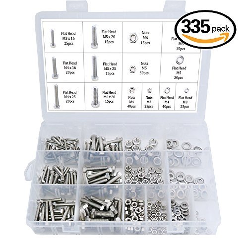 Glarks 335個 フラット六角ステンレスボルト ボルトナットロック およびフラットガスケットワッシャアソートメントキット Glarkによる提供