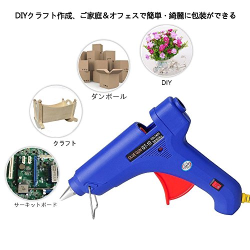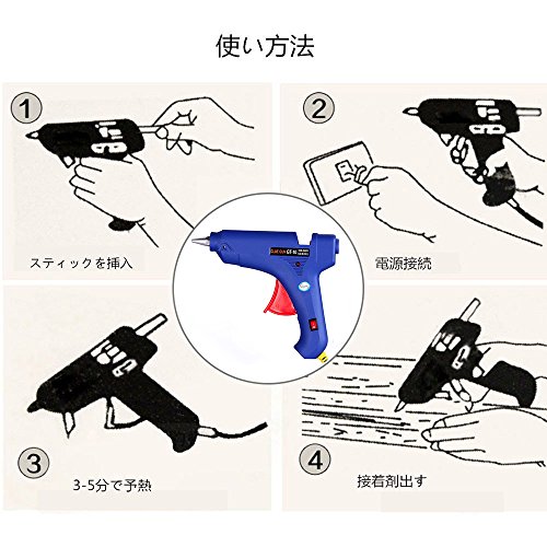 - 広用範囲:小型高温タイプのグルーガンは、トリガ式押出装置で接着剤の出る量の調節ができますが、グルースティックもかなり節約できる。木材、紙、布、皮革、プラスチック、金属等の接着、充填に適用する。