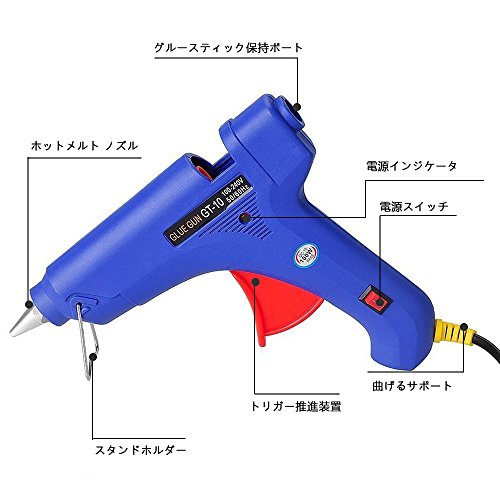 - 包装内容: グルーガン(19.5*17cm 100W)1本、グルースティック 黒色&黄色(Φ11MM*270mm)各5pcs。