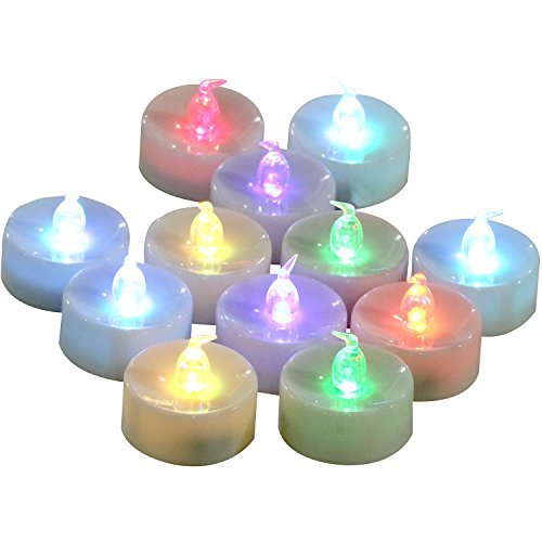 homemoryバッテリーティーライトの色変更、使わないカラフルなレインボーLED Tealights、12パック、7色点滅サイクルキャンドルライトお祝い、パーティー、ギフト、バレンタインの日