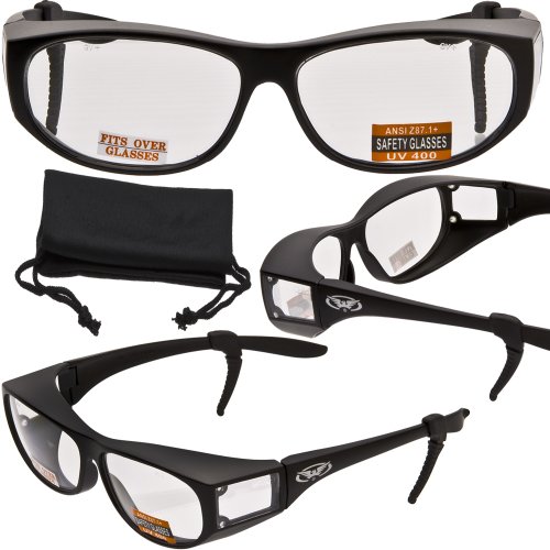 Escort高度なシステム安全メガネFitsほとんどover処方箋Eyewear – Freeゴム耳ロックとマイクロファイバーポーチ! – グロスブラックフレーム