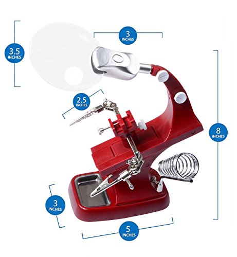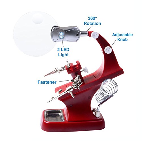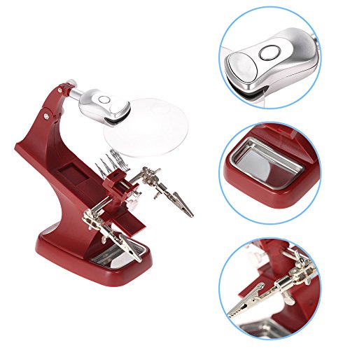 gocheer溶接拡大鏡多機能3 x / 4.5 X虫眼鏡拡大鏡2 LED withワニクリップHelping Handはんだ付けはんだホルダー修復ツールfor Mgnifying、アセンブリ、修復、モデリング