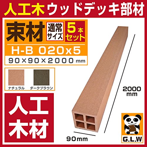 ウッドデッキ 人工木材 人工木 部材 樹脂ウッドデッキ 束材H-B020 90×90×2000mm【H-B020】【2色選択可】 (ナチュラル・5本セット)
