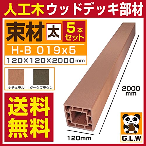 ウッドデッキ 人工木材 人工木 部材 樹脂ウッドデッキ 束材H-B019 120×120×2000mm【H-B019】【2色選択可】 (ダークブラウン・5本セット)
