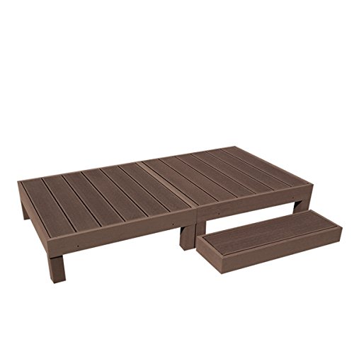 人工木ウッドデッキ 縁台+ステップ 3点セット 0.5坪 連結用ネジ付 樹脂 デッキ 縁台【2色選択可】 (ダークブラウン)