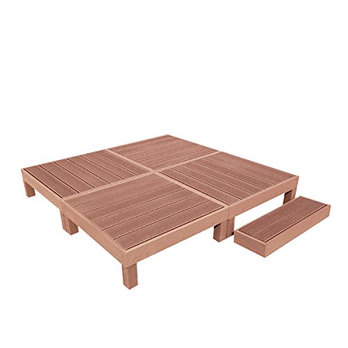 人工木ウッドデッキ 縁台+ステップ 5点セット 1坪 連結用ネジ付 樹脂 デッキ 縁台【2色選択可】 (ブラウン)